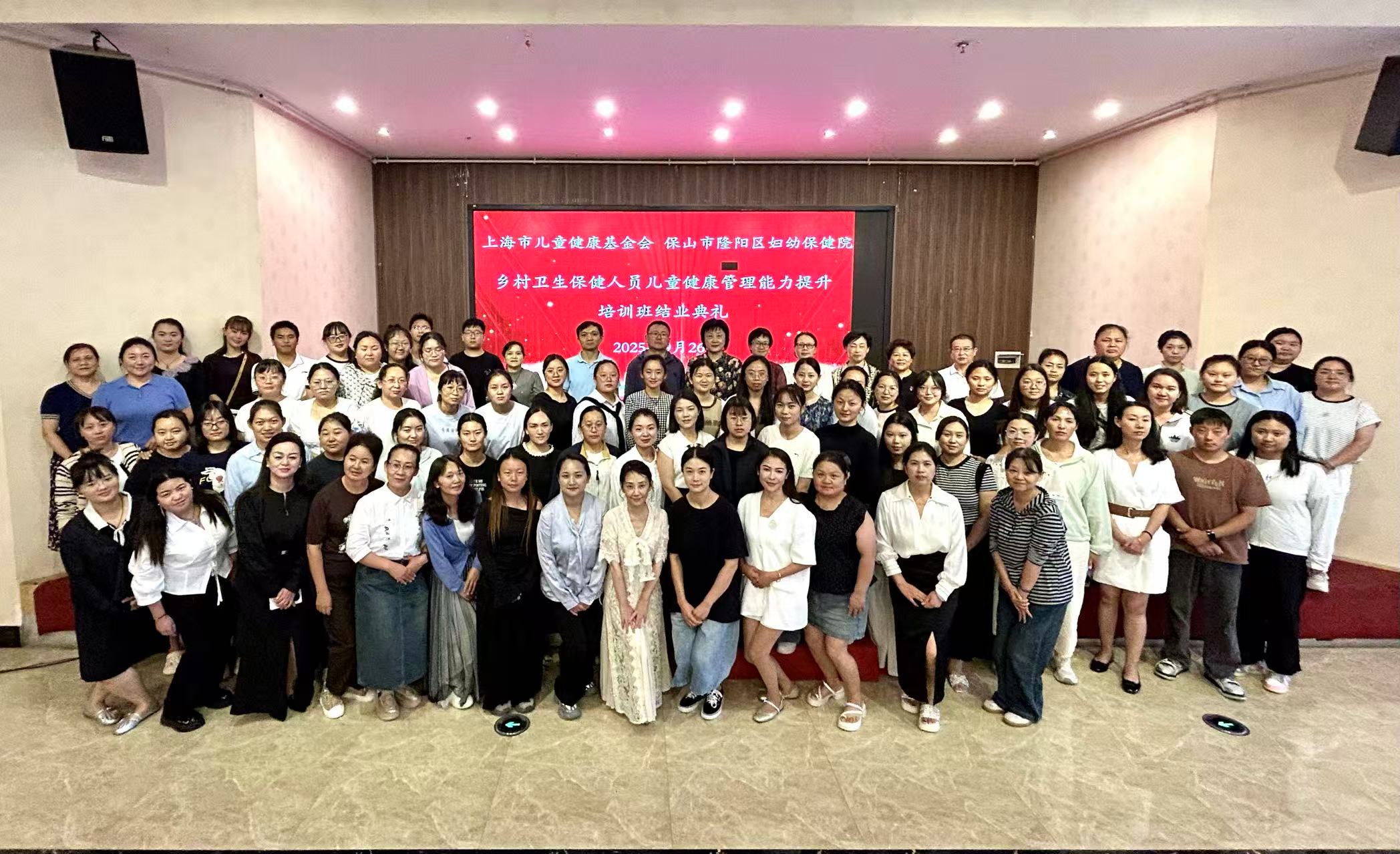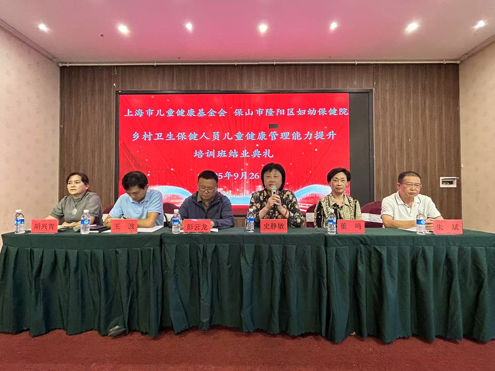 被列为2025年市政府沪滇合作的“乡村卫生保健人员儿童健康管理能力培训班”项目于9月22日-9月26日于云南省保山市圆满举行,历时5天。来自保山市下辖各乡镇基层医疗卫生机构和托幼机构卫生保健人员89名学员参加,其中有36个基层卫生院、28个托幼机构及辖区内的市、区、县妇幼保健院等一线儿科儿保医生。保山市卫健委副主任李艳、保山市隆阳区副区长段杨、刘钧、隆阳区妇幼保健院院长朱斌、上海市妇幼保健中心党总支书记,上海市儿童健康基金会副理事长(兼)张辉、上海市儿童健康基金会副理事长兼秘书长史静敏、副秘书长董鸣等出席了培训开幕式。在整个培训过程中,全体学员学习刻苦,态度端正,展现了良好的精神风貌和求知欲望。经培训和严格考核,86名学员获合格证书。保山市卫健委副主任彭云龙、隆阳区卫健局副局长王波、隆阳区妇幼保健院院长朱斌、副院长胡兴青、上海市儿童健康基金会副理事长兼秘书长史静敏、副秘书长董鸣参加了隆重的结业典礼,并为每位合格学员办法证书。